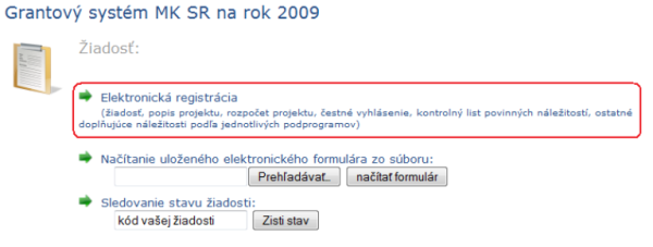 kliknutí na linku “Formulár na elektronickú registráciu žiadosti o poskytnutie