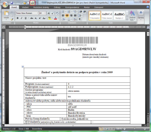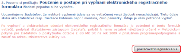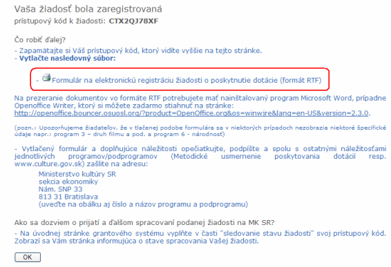 si nezabudnite vytlačiť "Formulár na elektronickú registráciu žiadosti o poskytnutie