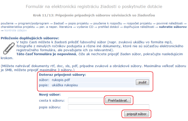 pripojiť ľubovoľný súbor, ktorého obsah nejako súvisí so žiadosťou. Môžete napríklad