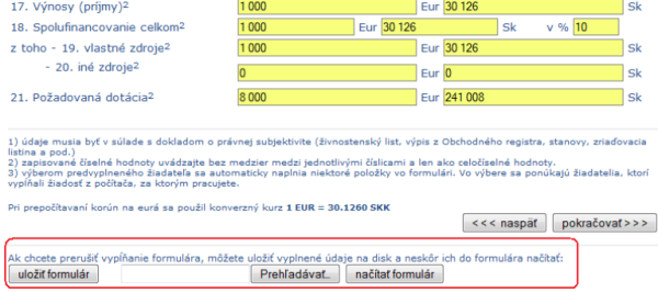 na uloženie a načítanie uloženého formulára nájdete v každom kroku v spodnej