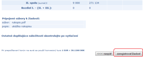 kliknite na tlačidlo “zaregistrovať žiadosť”. Žiadosť bude zaregistrovaná a dáta